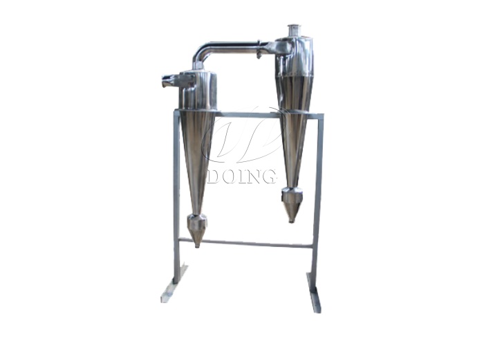 4、提純。由于篩分后得到的淀粉漿里還有一些纖維、果膠、蛋白、脂肪等雜質,這些雜質會影響淀粉的純度、白度、灰分、蛋白含量等等,所以需要將土豆淀粉漿進一步提純,配備旋流器進行土豆淀粉漿提純。